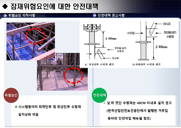 OPL : 시스템동바리 최하단부 및 최상단부 수평재 설치상태 미흡