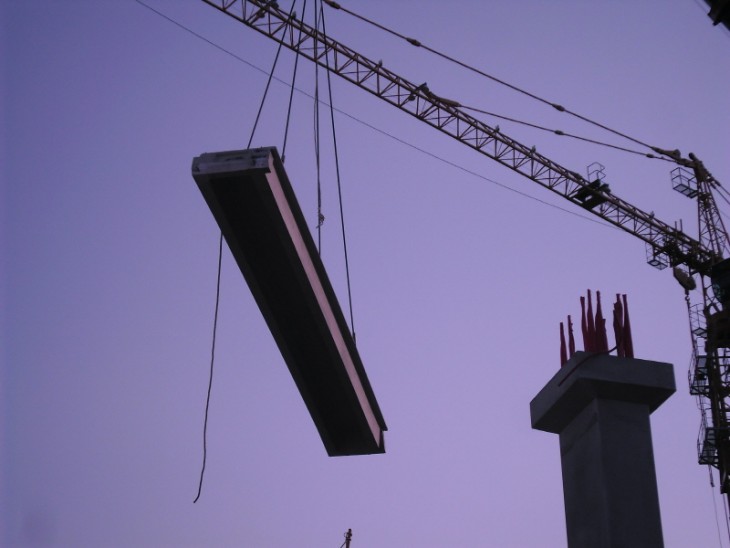 PC 빔 조립(거치) 작업 시 안전대를 거치하여 추락을 방지합니다