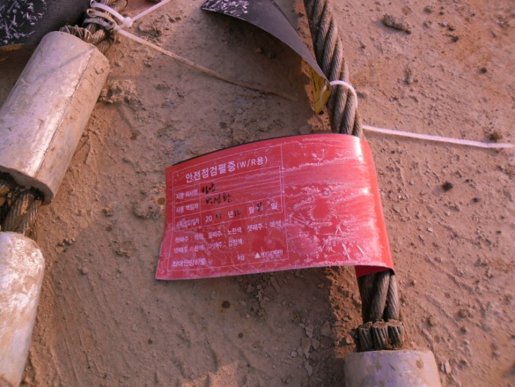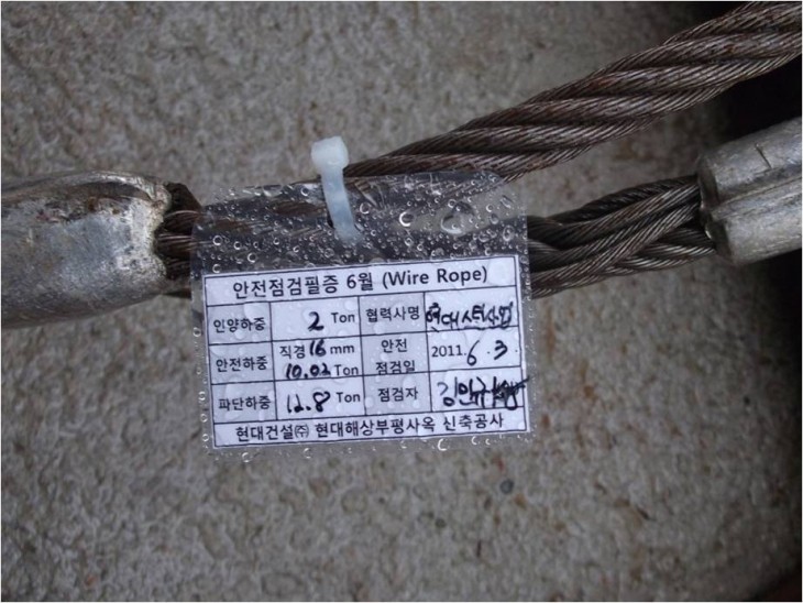 와이어로프 안전점검 및 점검필증 양호