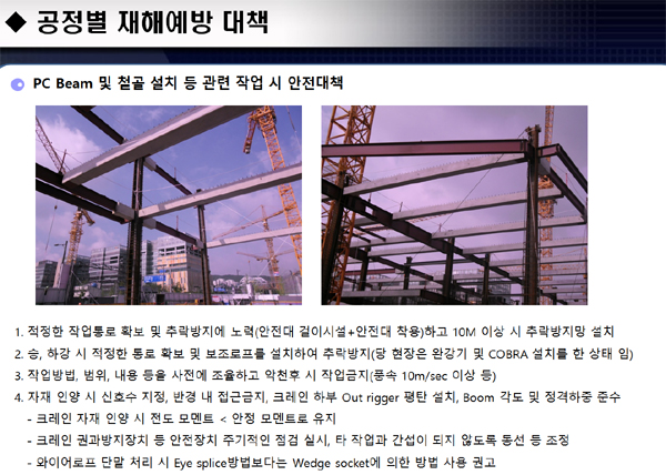 PC Beam 및 철골 설치 등 관련 작업 시 안전대책