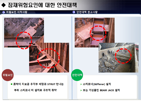 흙막이지보공 스티프너 미 설치로 구조적 취약 : 2쪽으로 구성되어 있습니다.