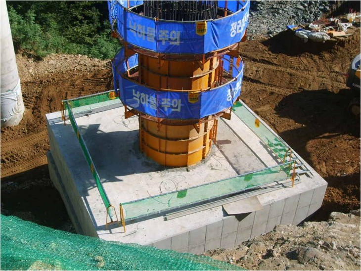 교대 날개벽 동바리 쐐기 설치 및 못으로 고정 양호