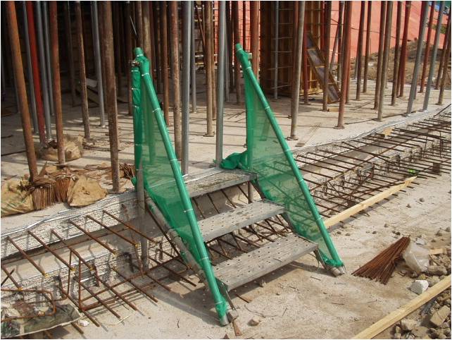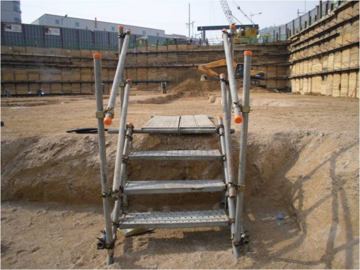 - 소수력발전소 유입부 경사면 단부 추락방호 시설 및 경사로 통로 양호-소수력발전소 유입부 외브비계 설치상태 및 난간대 및 승...