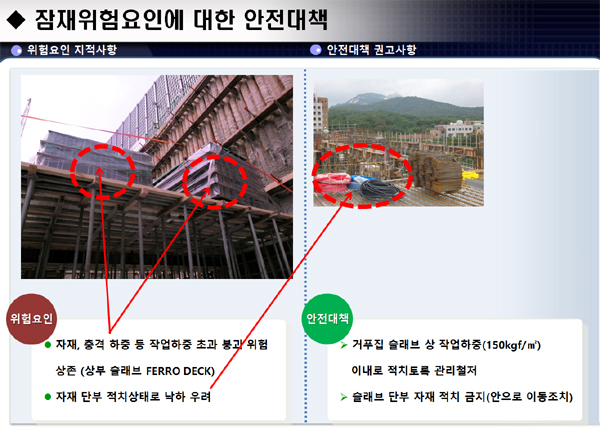 OPL : 거푸집 슬래브 위 자재 등 과다 적치로 붕괴 우려