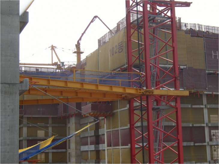 레미콘 슈투(Chute)작업 시 낮은 작업발판 설치(불안전한 행동 방지)