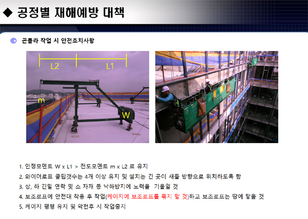 곤돌라 작업 시 안전조치사항 : 2쪽으로 구성되어 있습니다.