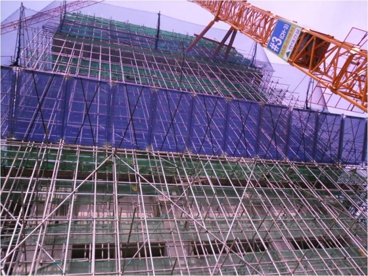 낙하물방지망 및 수직방망 설치상태 양호