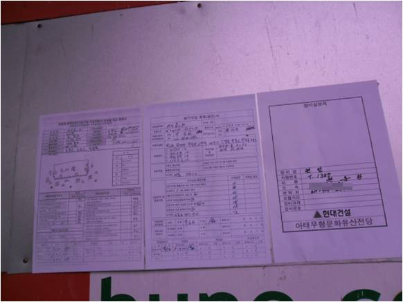 고소작업대(렌탈) 외부에 작업계획서 부착 양호