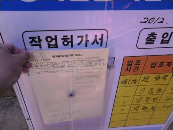 탱크 관련 작업허가 및 허가서 비치상태 양호