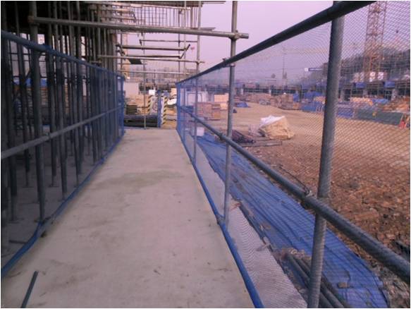 건설용리프트 양쪽 틈에 안전난간대 설치