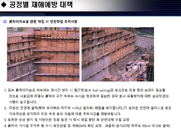 OPL : 흙막이지보공 관련 작업 시 안전작업 조치사항