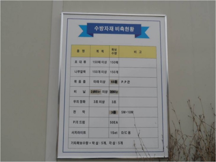 우수사진 : 수방자재 비축현황판