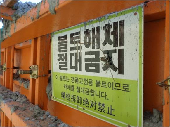 우수사진 : 갱폼 볼트해체금지 표지