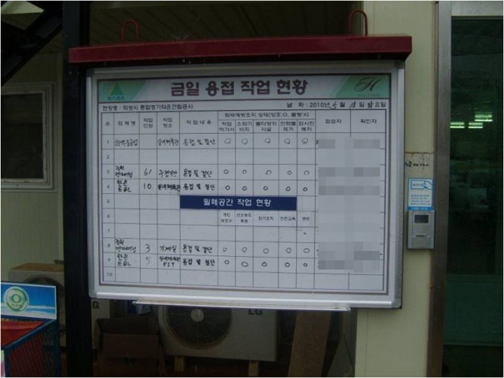 당일 용접 및 밀폐공간 작업 등 현황을 파악하여 관리감독