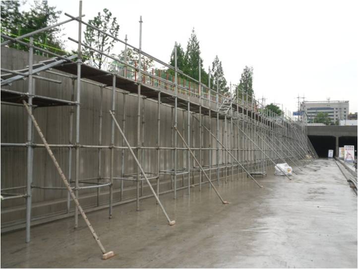 지하차도 옹벽 가설비계 전도방지 버팀대 설치1