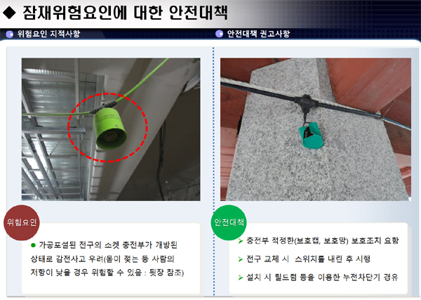 전구소켓 충전부가 개방된 상태로 감전사고 우려 : 2쪽으로 구성되어 있습니다.