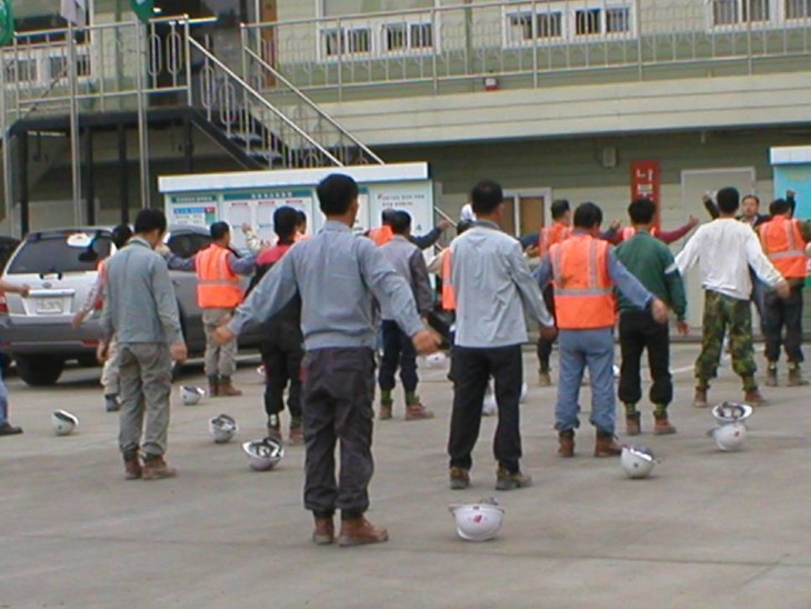 흙막이 띠장 부위 용접작업시 안전대_용접면 착용