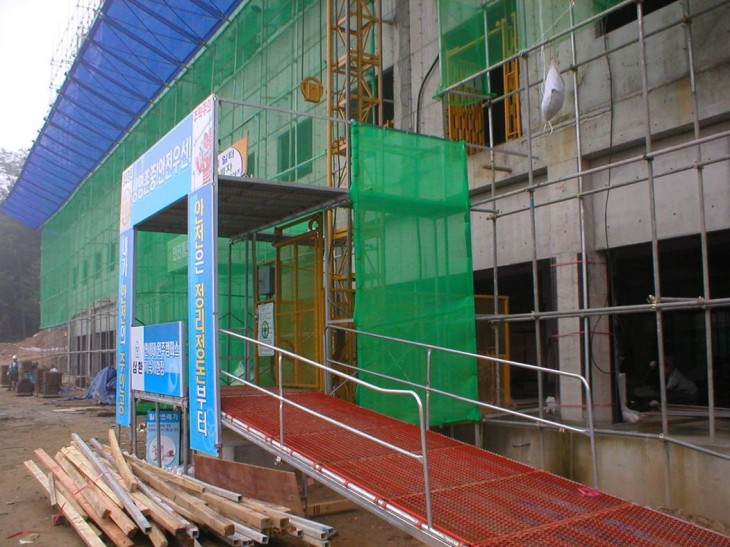 우수사진 : 건설용리프트(호이스트) 입구 안전통로 등