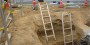 절토면 사다리 사용시 상,하부 고정상태 및 내민길이 확보등 양호