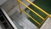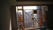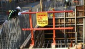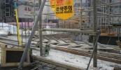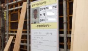 건설용리프트 양쪽 틈에 안전난간대 설치