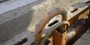 갱폼 이동통로 여닫이문의 하부로 처짐방지를 위하여 모서리에 철판을 설치하였습니다.