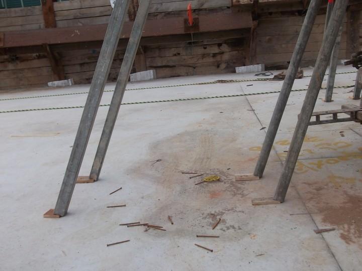 기둥거푸집에 버팀조치 및 찔림방지를 하였습니다.