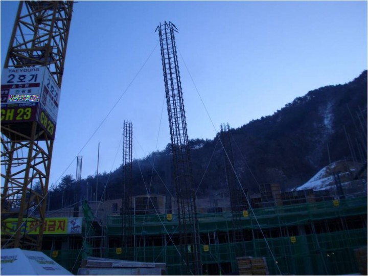 기둥철근의 전도방지를 위하여 지지로프를 설치하였습니다.