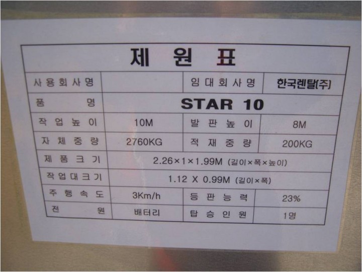 우수사진 : 고소작업대 제원표