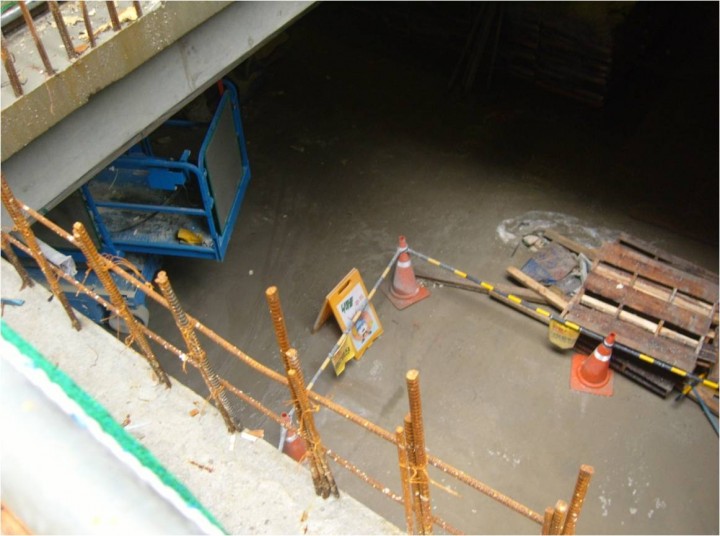 SLAB 단부 안전난간대 및 수직방망 설치상태 양호