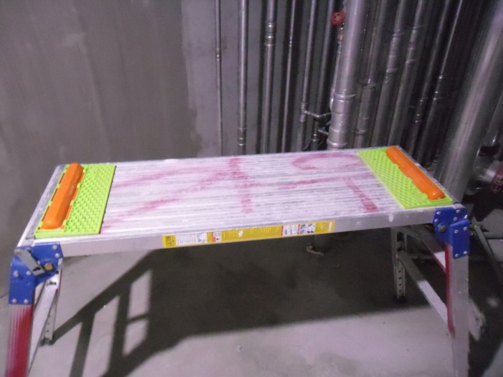 말비계 단부에 기성품 스토퍼(Stopper)를 설치하였습니다.