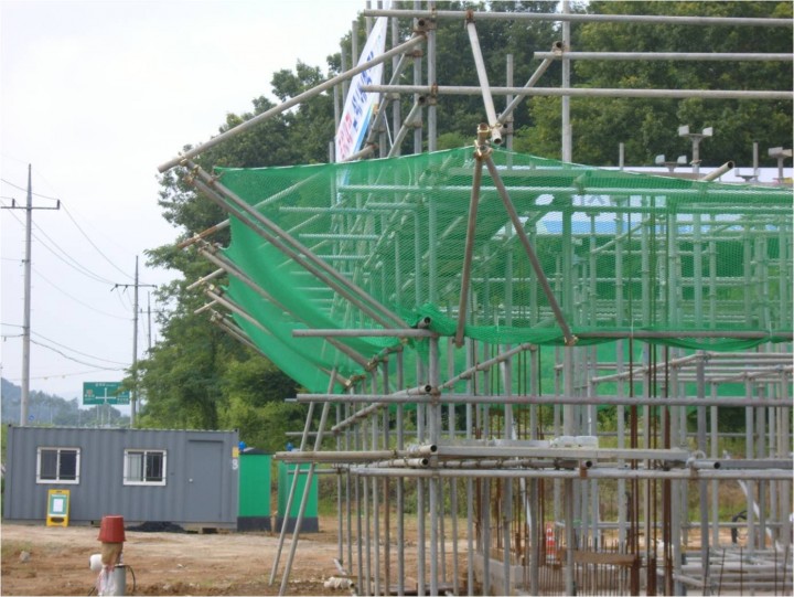 가설계단 하부 낙하물방지망 설치상태 양호
